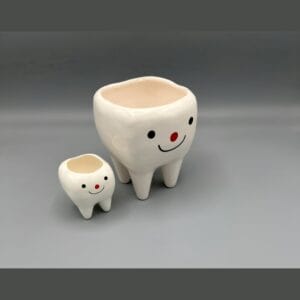 گلدان بزرگ طرح دندان با طراحی خندان و سرامیکی، مناسب دکوراسیون خانه و مطب دندانپزشکی. مقاوم، شیک و ایده‌آل برای گیاهان بزرگ.
