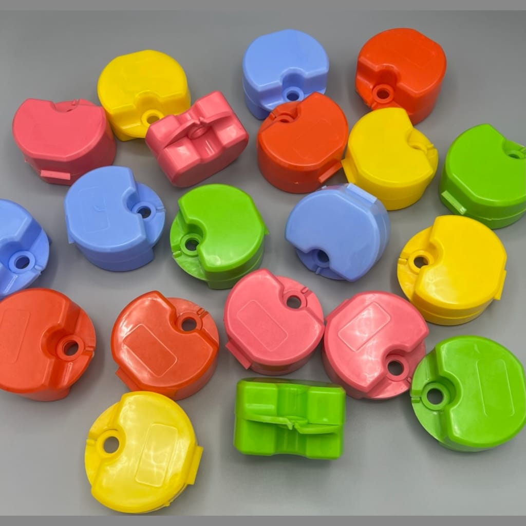 این مجموعه شامل 200 جعبه پلاستیکی بزرگ با طراحی ارگونومیک به شکل دندان است که در رنگهای شاد و متنوع (مانند زرد، آبی، صورتی، سبز و نارنجی) عرضه میشود. این جعبهها با درپوش محکم و فضای جادار، برای نگهداری ایمن پلاکهای بزرگ ارتودنسی طراحی شدهاند و از آسیب یا گم شدن آنها جلوگیری میکنند.