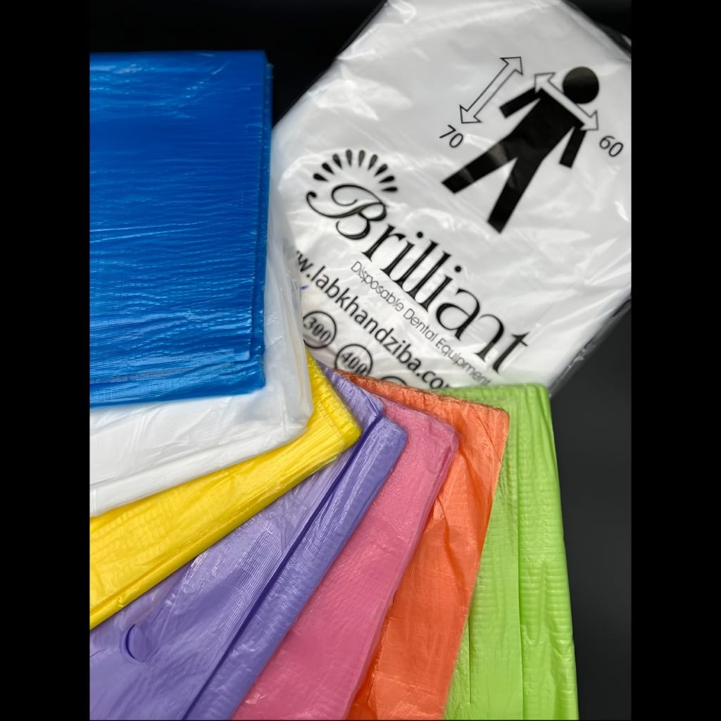 پیش بند نایلونی ۵۰ عددی برلیان، ضدآب و ضدحساسیت، مناسب دندانپزشکی با رنگهای متنوع.